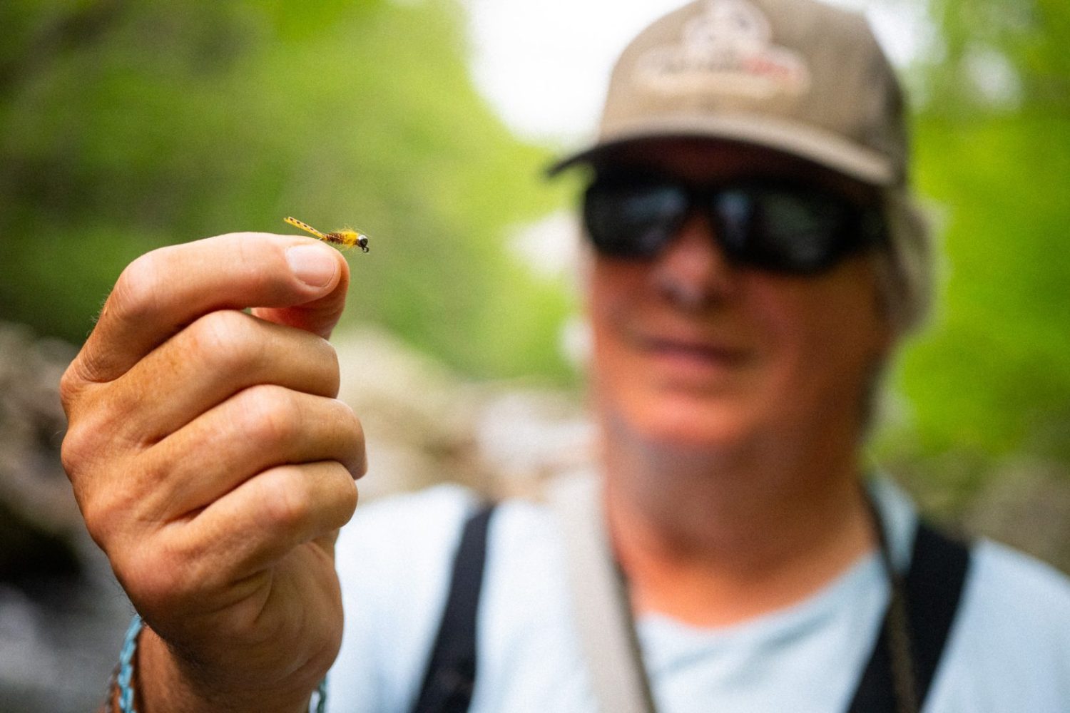 Throughout the film, it’s evident that Tim loves studying bugs and fly design. Tim likes simple and effective flies, or guide flies as some know them. Because of this, his process of designing new flies is often guided by the question: How simple can a fly be and still catch fish? In fact, this process involves removing materials from existing patterns until he finds the sweet spot where simplicity and productivity meet. Tim identifies mayfly nymphs, caddis larvae, midges, and scuds in the aquarium and explains what they reveal about a stream. From samples, we learn about the health of a stream, what trout eat, where they live, and how to catch more. Tim finds a golden stonefly nymph and highlights the traits he features in his Euro Golden Stone pattern.. Watch Tim in action and reap the rewards of his teachings!