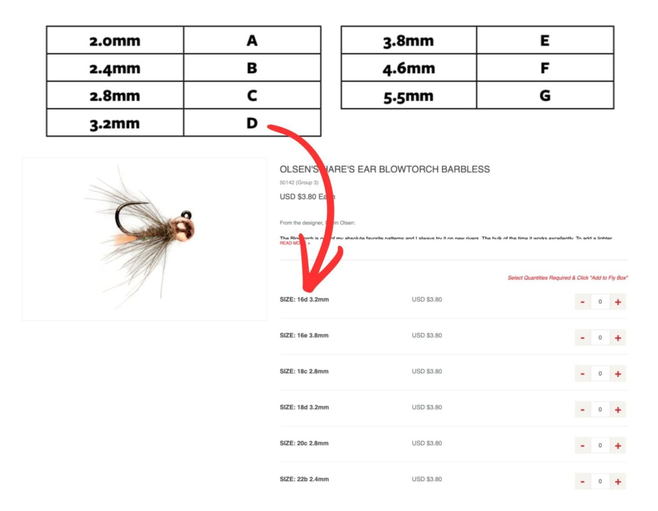 Unlike most fly suppliers, Fulling Mill offers multiple bead sizes for the same hook size. This allows you to customize your box for your waters and meet every situation head-on. The bead sizes are denoted by the letter next to the fly size.