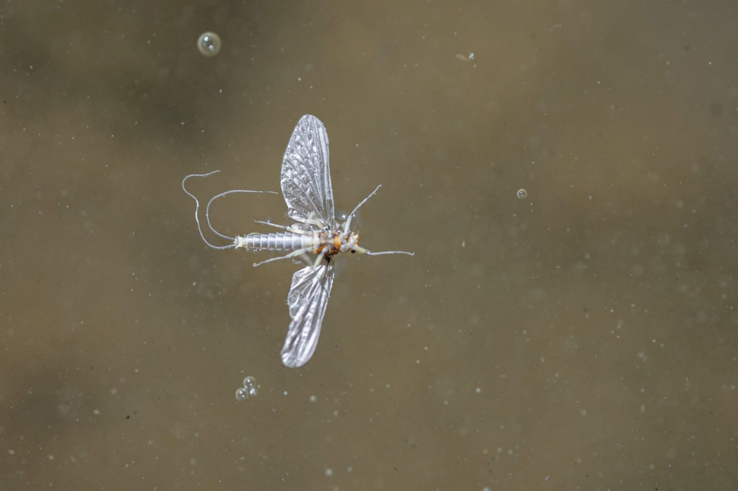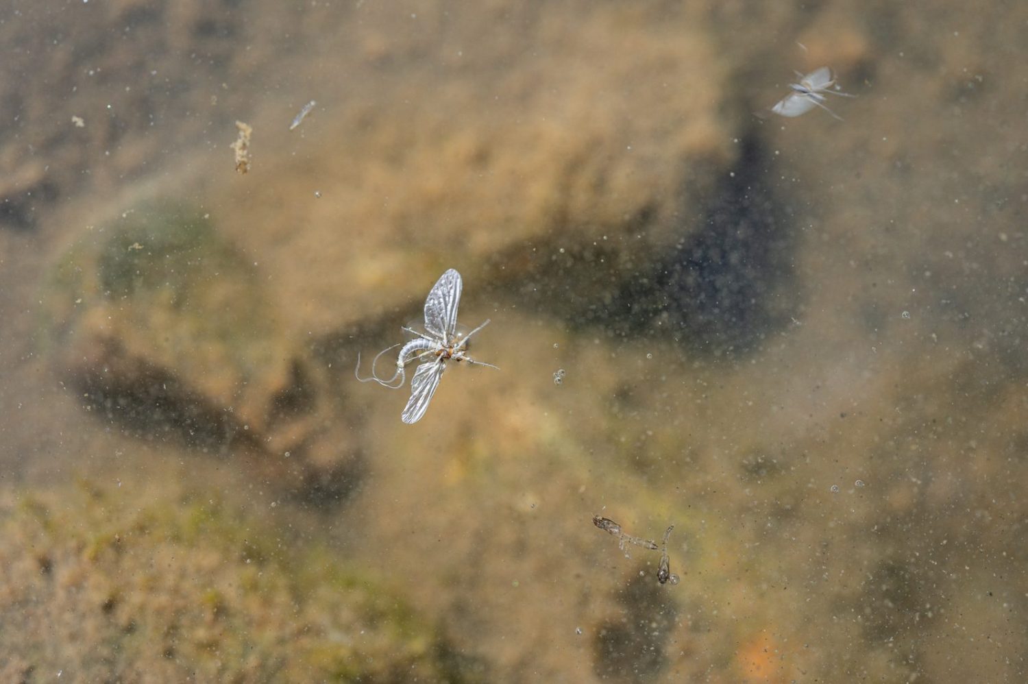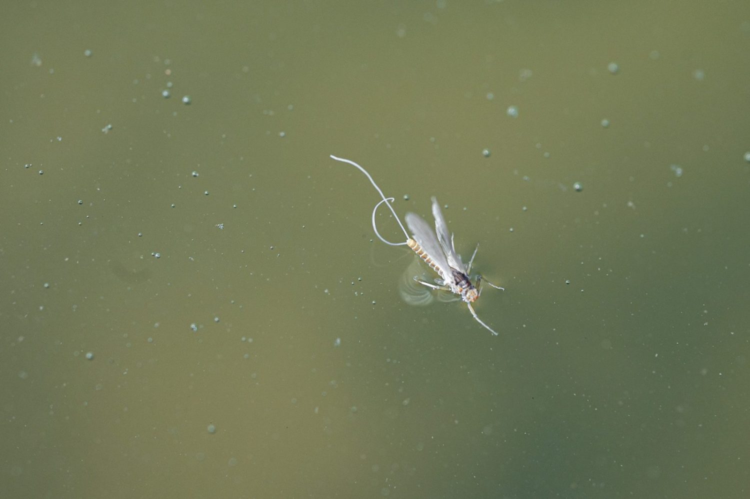 For BWO adults that successfully fly away, they undergo one final molt after emergence. Late in the day, these duns become sexually mature spinners. After successfully mating, male spinners die off almost immediately. After dusk, female spinners lay eggs just below the water’s surface and die having fulfilled their reproductive duties.