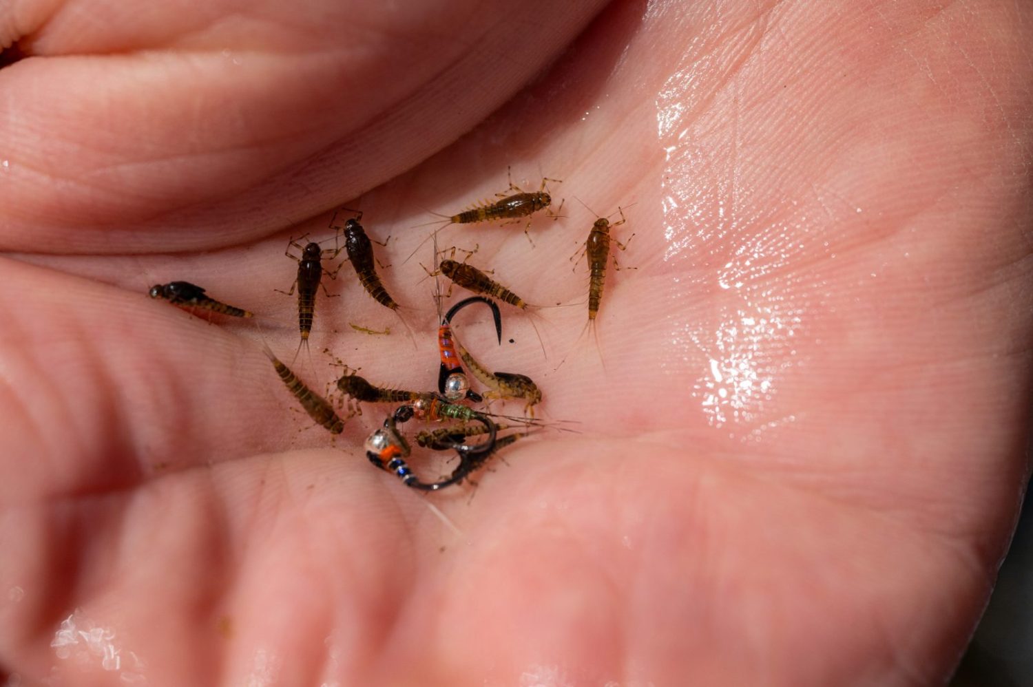 Try fishing olive/brown patterns with a tapered body, tail fibers, segmented abdomens, and perhaps some movement in the fly, like CDC. Some nymphs look almost black, others are pretty light in color. It never hurts to have a range of shades and sizes in the nymph box. Below are some of our top Baetis and other BWO nymphs that we highly recommend.