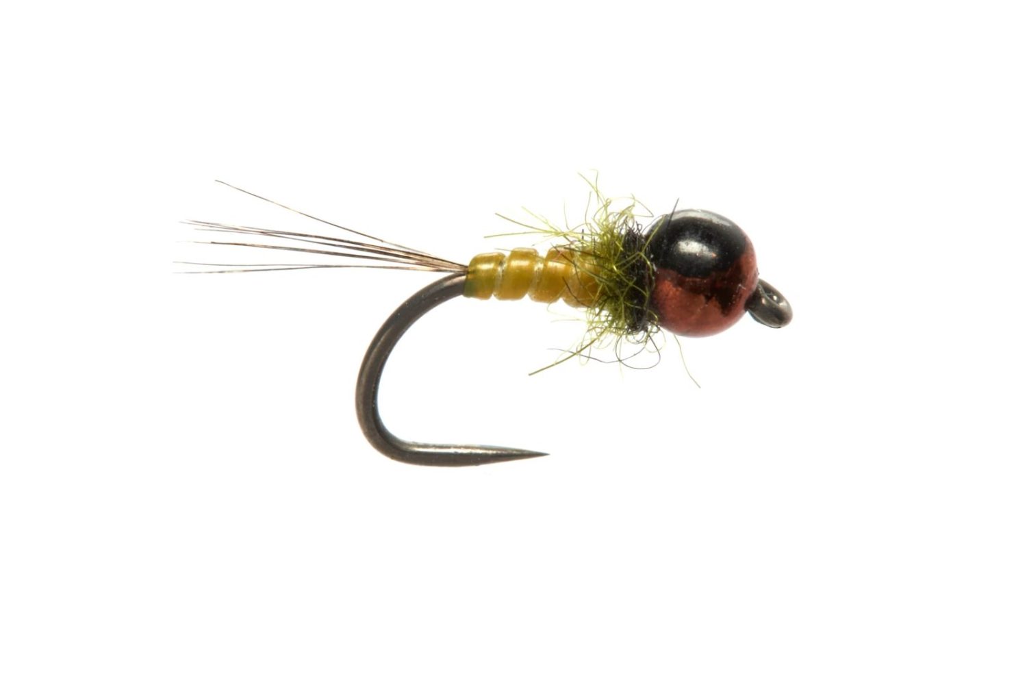 This mayfly nymph is particularly effective during hatches of small mayflies such as Blue Winged Olives (BWO). Its translucent body is highly effective on difficult, spooky fish in clear water. Designed for sight fishing in deeper water, whether in NZ Style or European Style Nymphing, it truly excels when fished straight upstream, especially as a dropper. The copper bead version is ideal for fishing acidic, tea-colored waters. The black dot on the bead dulls excessive shine—essential on heavily pressured waters—while still producing subtle flashes during animation. Offered in sizes 16, 18, and 20.