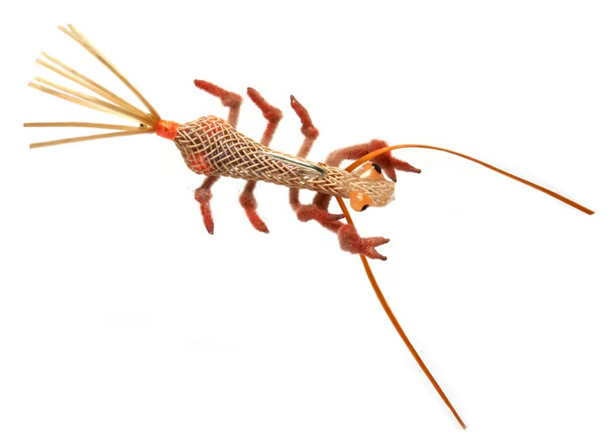 Mike says, ” This crittery pattern has been in the works for a couple years now. Designed for “Tailing” Bonefish and Permit, but also applies to Permit feeding with rays. “Crustacean Pie” imitates a “crab” or a “Bigclaw Snapping Shrimp”. This pattern has a little bit of everything from claws, eyes, antennae, rabbit fur carapace, and winging to create a tasty slice of “Crustacean Pie”. Hence the naming of this pattern by renowned guide Travis Sands at Soul Fly Lodge in the Bahamas. It’s a “stimulator” pattern that stimulates a feeding reaction from Bonefish, Permit, and many other species of the “Flats”