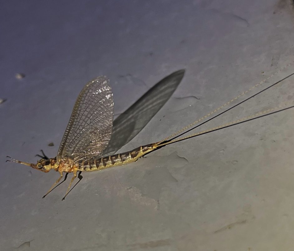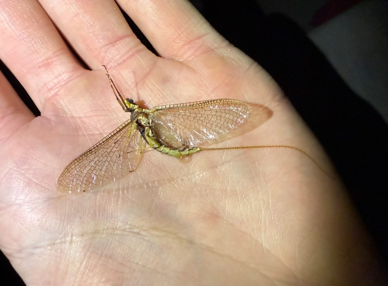 Hexagenia Limbata, also known as the “Giant Mayfly”, or “hex” for short, hatches in mid-June when we begin to see hot days and warm nights with air temperatures ranging from 70-80+ degrees. Higher air temperatures paired with intermittent moments of marginal water temperatures and prevalent thunderstorms make for the emergence of the hex–the largest mayfly in Michigan.
