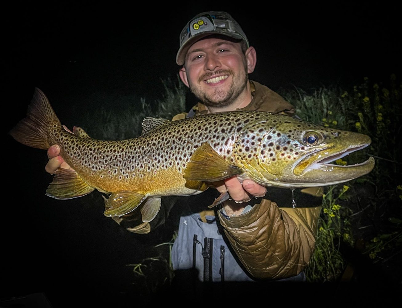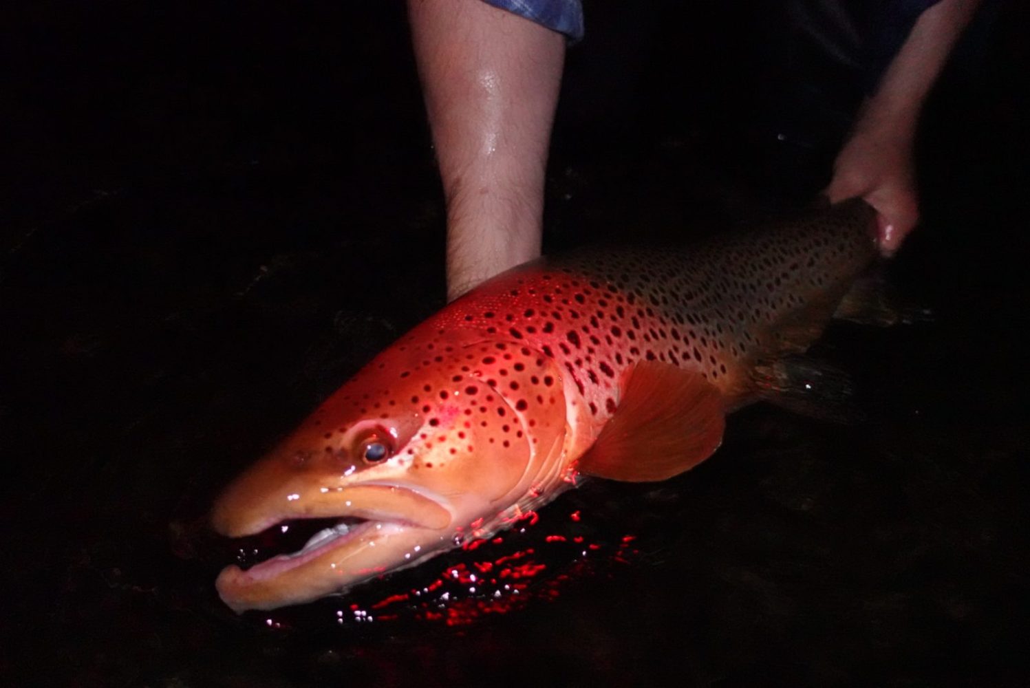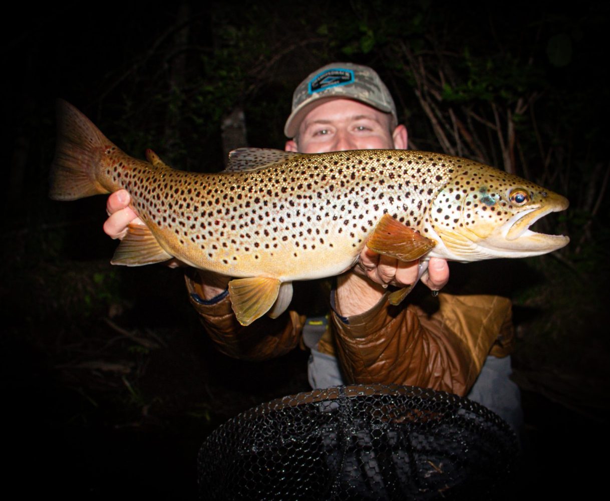 The drive to the river is almost always quiet, despite the tangible excitement and self-inflicted pressure. You pull into a boat launch packed with other anglers, back the boat in, and make sure you contact your car spotter before floating away. The night begins on anchor, picking a prime area where you can sit back, relax, and enjoy the company of your friends. As the evening progresses, Isonychia (size 10 pale/purple hues mayflies) start to come off, which often brings out some early feeding fish. Isonychia are a great food source for trout and offer anglers an opportunity to catch the first big fish before the hex makes an appearance. Hunting early rises can yield several nice fish for a skilled angler, so it pays off to arrive early!