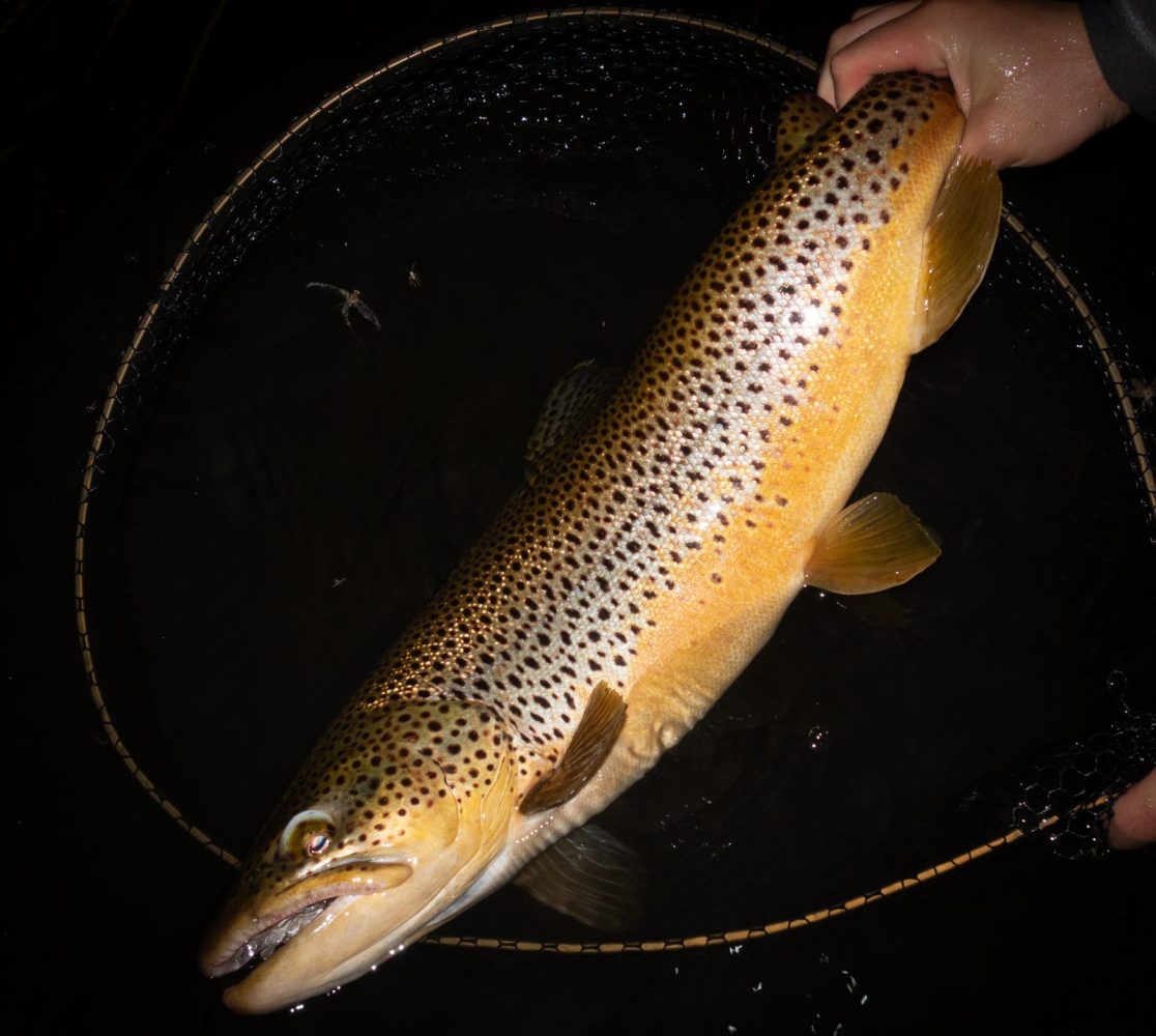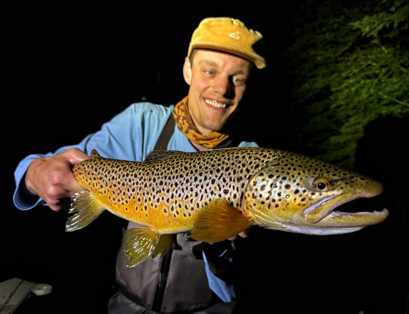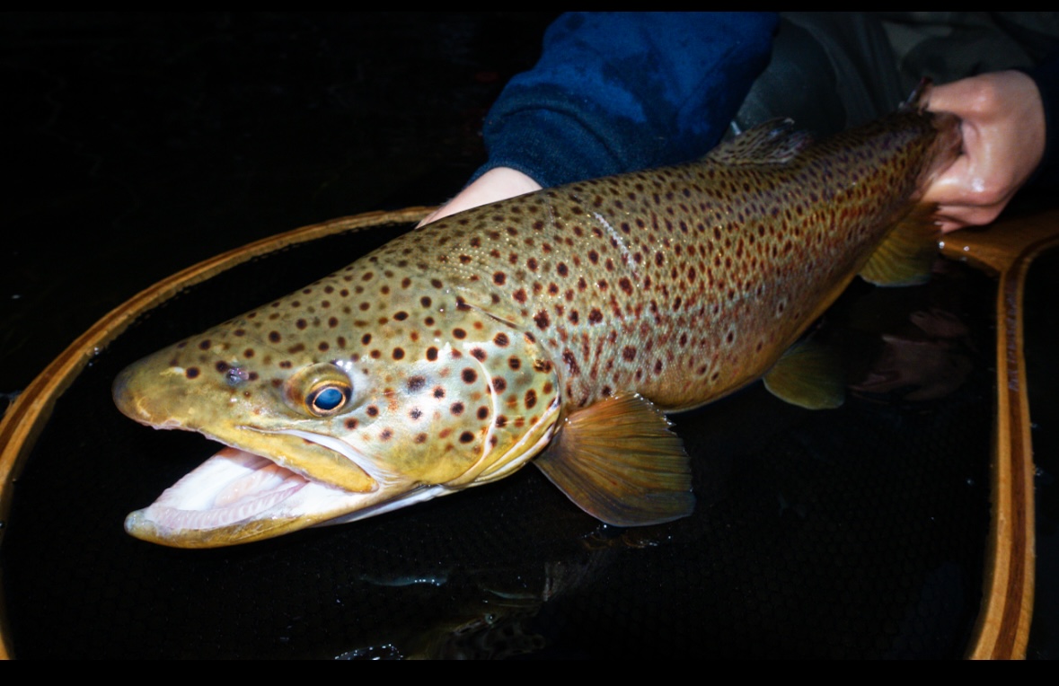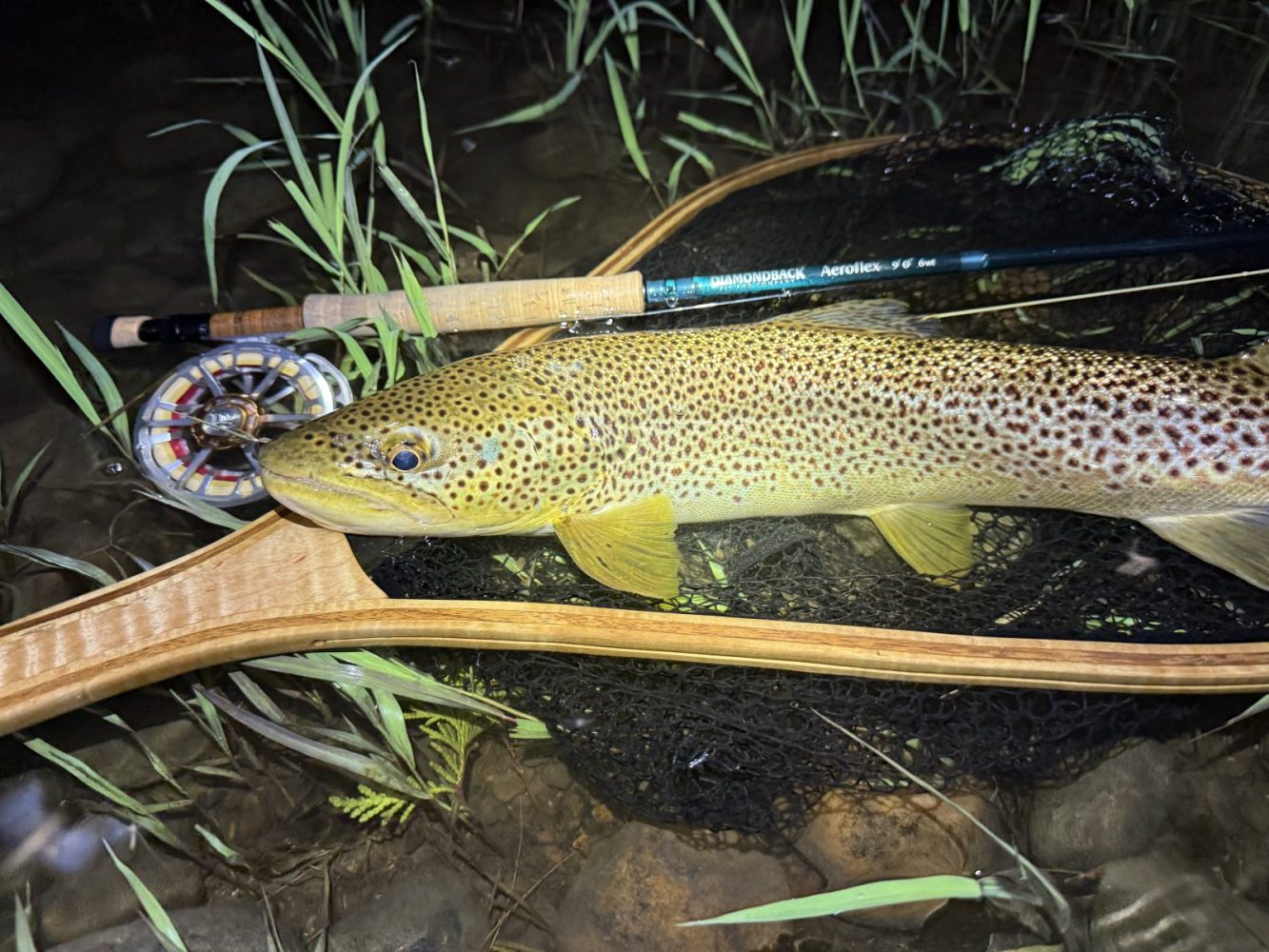 The drive to the river is almost always quiet, despite the tangible excitement and self-inflicted pressure. You pull into a boat launch packed with other anglers, back the boat in, and make sure you contact your car spotter before floating away. The night begins on anchor, picking a prime area where you can sit back, relax, and enjoy the company of your friends. As the evening progresses, Isonychia (size 10 pale/purple hues mayflies) start to come off, which often brings out some early feeding fish. Isonychia are a great food source for trout and offer anglers an opportunity to catch the first big fish before the hex makes an appearance. Hunting early rises can yield several nice fish for a skilled angler, so it pays off to arrive early!