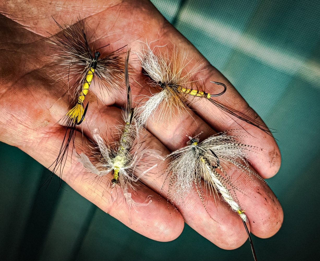 The hex spinner fall, which takes place just after dark, primarily consists of spent “spinners”—dead mayflies. A spinner fall is when bugs that hatched 48 hours ago fly upriver, mate, then die on the water. These are incredibly exciting moments for an angler due to the volume of vulnerable bugs hitting the water. These are best imitated by a slightly higher riding hex pattern that will stand out within massive blankets of bugs.